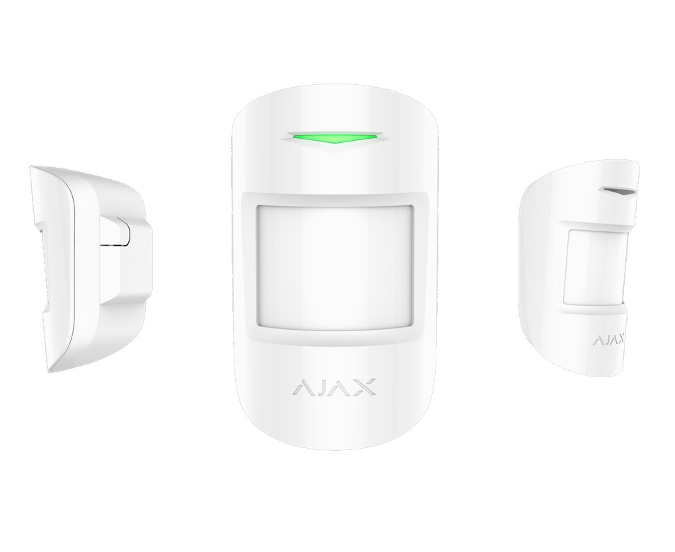 Wireless combined motion and glass break detector. The device helps to secure the room from intruders entering through doors and windows, and monitors the current state of the glass. The device combines the functions of two detectors — motion detector and glass break detector. It detects motion in the room at a distance of up to 12 m and registers broken glass at a distance of up to 9 m from the window. The device detects motion even in hot climates by means of temperature compensation. It filters false alarms caused by thunder, dogs barking or the sound of passing trucks. Ready to operate straight out the box: the battery is already installed, therefore there is no need to disassemble the detector. With one click, it can be connected to the hub in the mobile application. It can be mounted on the SmartBracket in just a few minutes.