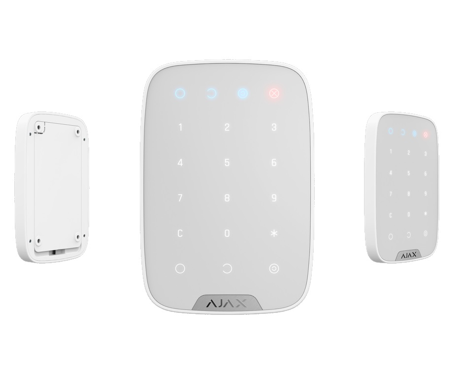 Wireless touch keypad is used for arming/disarming of Ajax security system. It is mounted in the room near the entrance door to provide quick access to the keypad. The device operates security modes when a digital code is entered on the keypad. Indication notifies of current security status, problems with detectors or breakdown of communication with the hub. Alarm button is available. It notifies of each attempt to guess the password and blocks automatically if the permissible number of entries is exceeded. Ready to operate straight out the box: the battery is already installed, therefore there is no need to disassemble the keypad. With one click, it can be connected to the hub in the mobile application. It can be mounted on the SmartBracket in just a few minutes.