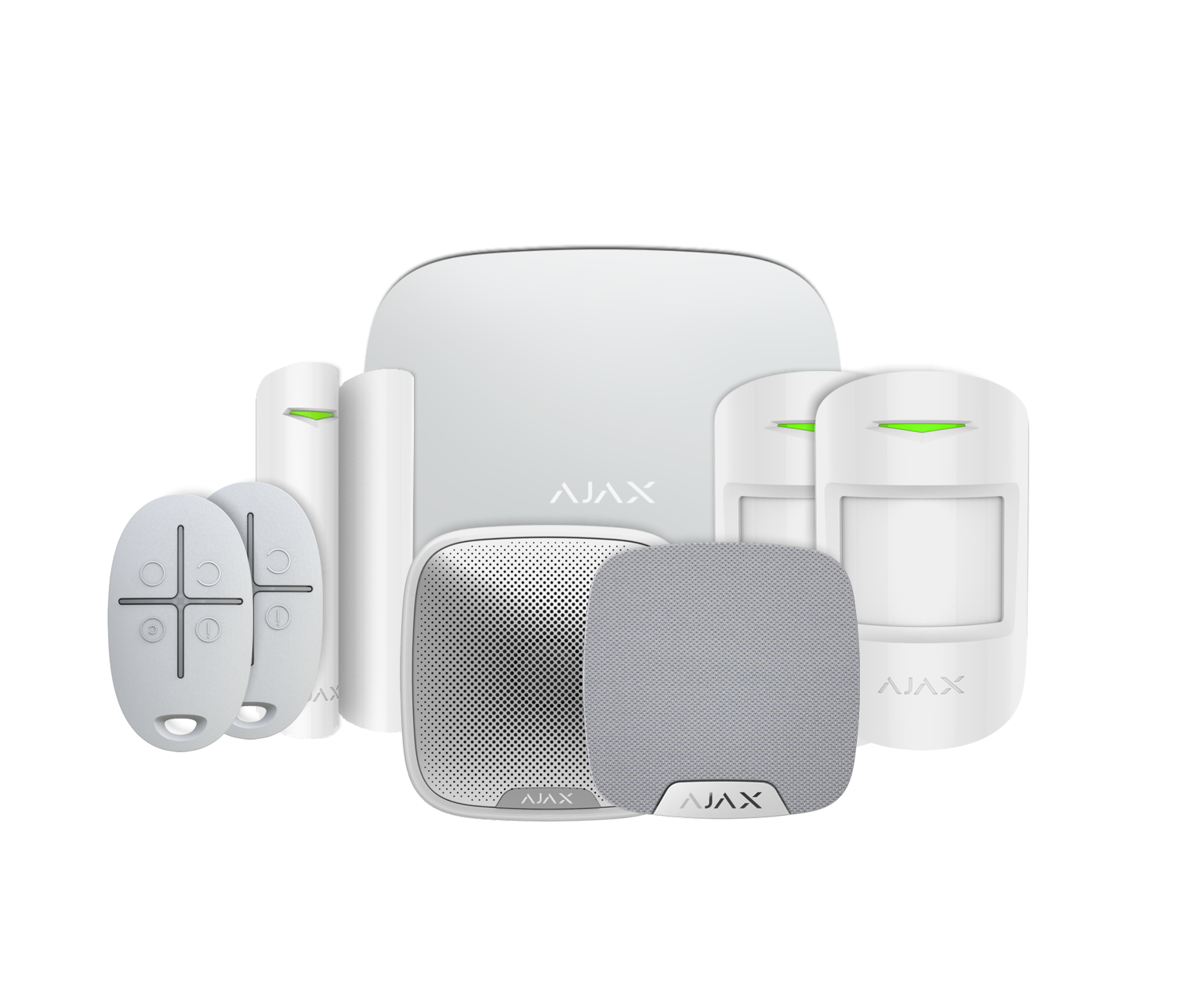 The Kit 1 features Ajax Hub 2 (supports all AJAX devices including motion cams + 32 Scenarios), 2x MotionProtect, DoorProtect, 2x Space control, StreetSiren and HomeSiren. With a fully Wireless Intruder alarm system, years of battery life, and a Simplistic setup procedure, it's easy to see why Ajax is winning awards and making waves in the security industry. The advanced Jeweller Radio Technology combined with Anti-jamming bring superb reliability and the no wires, no-hassle setup makes it super fast and easy to setup.