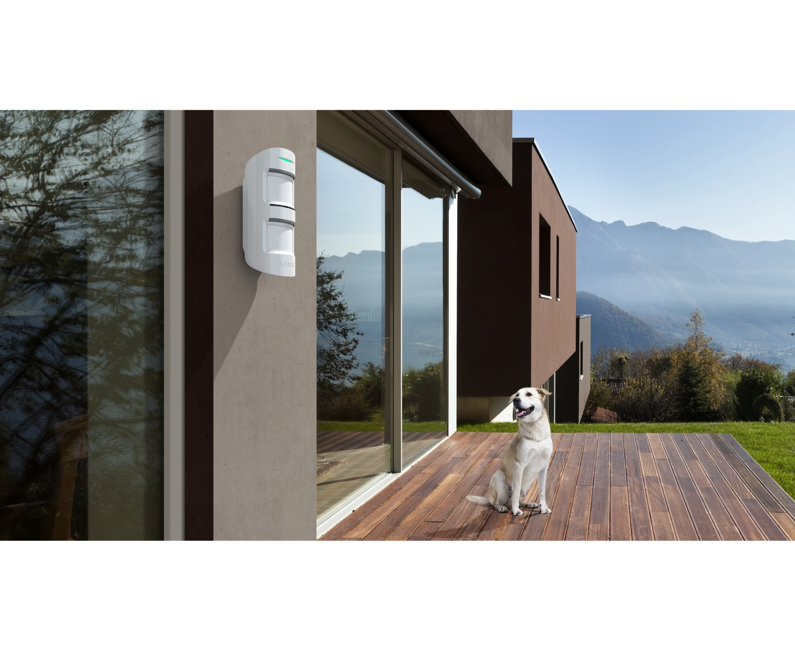 Wireless outdoor motion detector with intelligent protection against false alarms. The device operates at low temperatures and is protected against dust and splashes. LISA turns MotionProtect Outdoor into a formidable barrier for intruders. The digital algorithm accurately identifies the movement of a person while ignoring animals, swaying of trees and plants as well as birds and insects that land on the detector. The MotionProtect Outdoor features the maximum possible protection for outdoor detectors. The anti-masking function, which in on around the clock by default, detects installation of barriers, pasting over, application of paint or transparent coating on one or two lenses. The integrated tamper alarms if the dust- and moisture-proof detector body is opened. MotionProtect Outdoor comes with pre-installed battery, so you do not need to disassemble it. The detector can be connected to the hub by one click in the mobile application. It can be mounted at a height of 0.8 to 1.3 meters on the SmartBracket in just a few minutes. Although the complete battery life is 5 years, it is possible to connect external power supply.