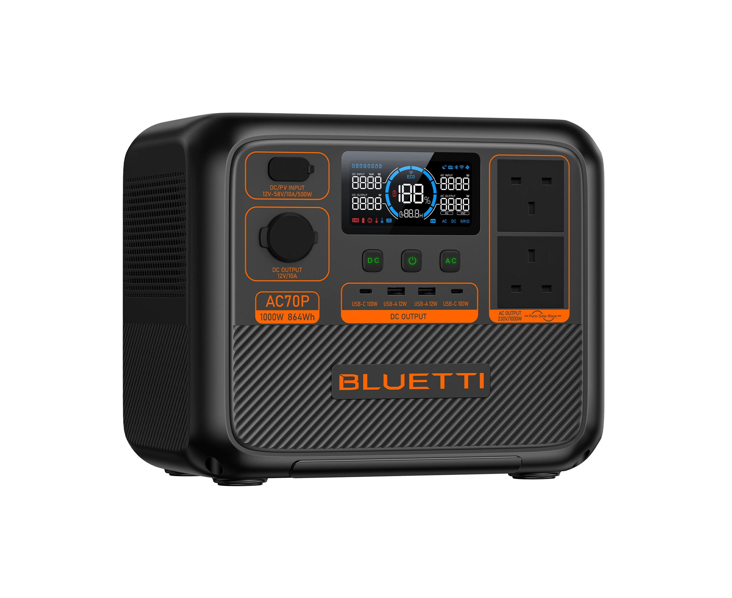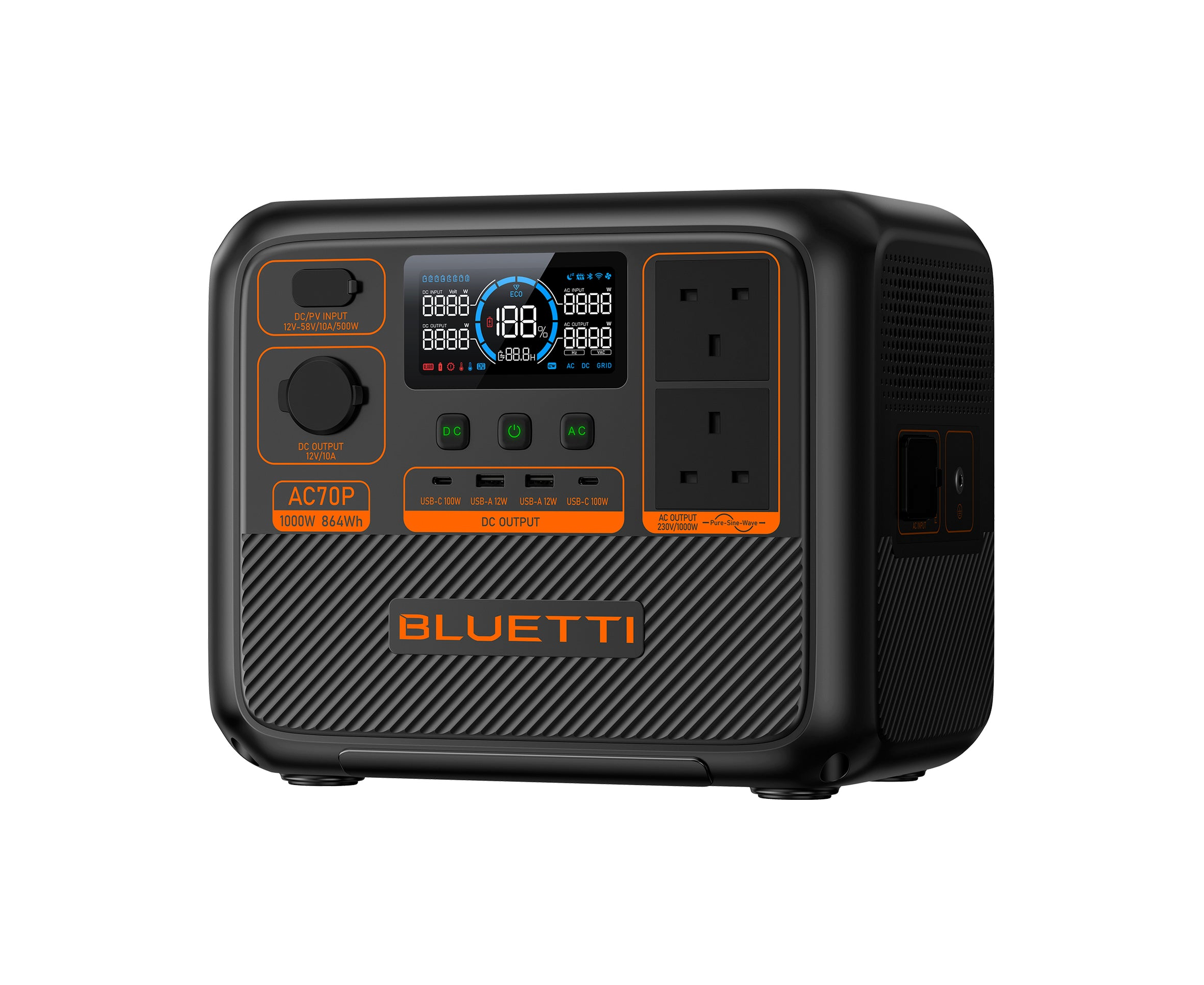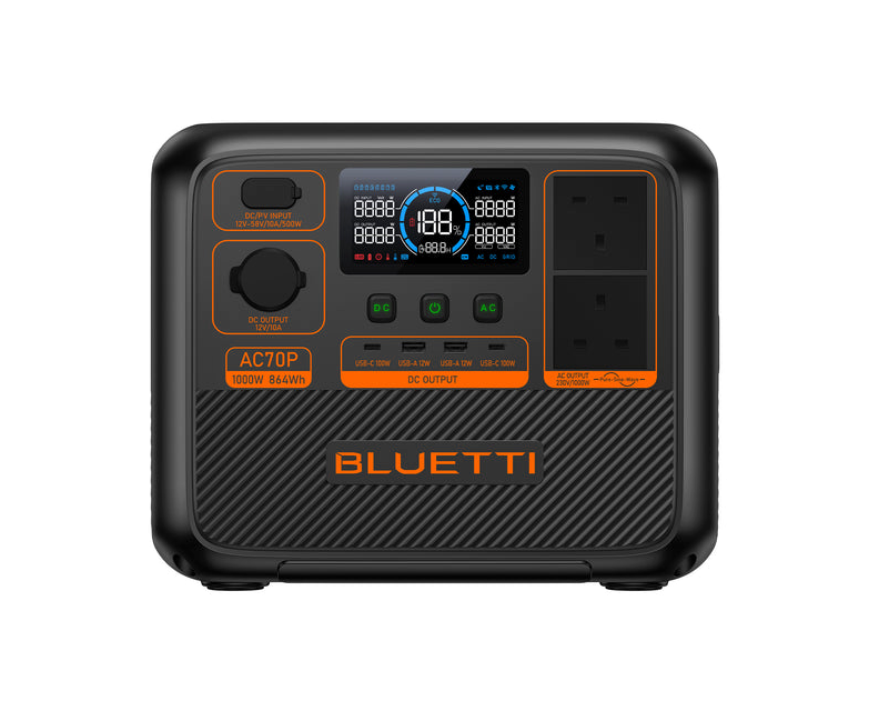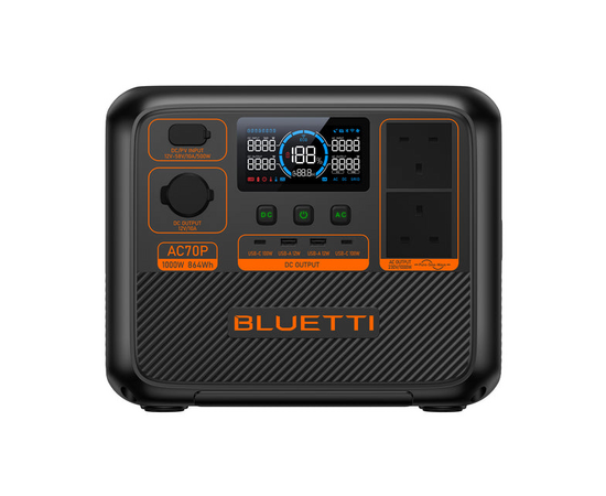 Elevate your on-the-go power solutions with the BLUETTI AC70P Power Station! Boasting a robust 864Wh capacity and a 1,000W continuous power, it effortlessly energizes your essential devices during outdoor adventures, RV escapades, or cozy moments at home. The lightweight and portable design ensures non-stop power is always at your service whenever you need.