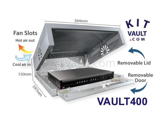 The KitVault range has a unique design that allows both the door and lid to be removed whilst an engineer is installing or maintaining the equipment inside. Once work is done it intuitively slots together and locks resulting in a secure equipment cabinet. It can save valuable engineer's time on service visits.Measuring W564xD597xH150mm and it can be for mounted to the wall when sat on a worktop or desk in a back room or security office so not only the recorder but the enclosure too are safe from the risk of theft.
