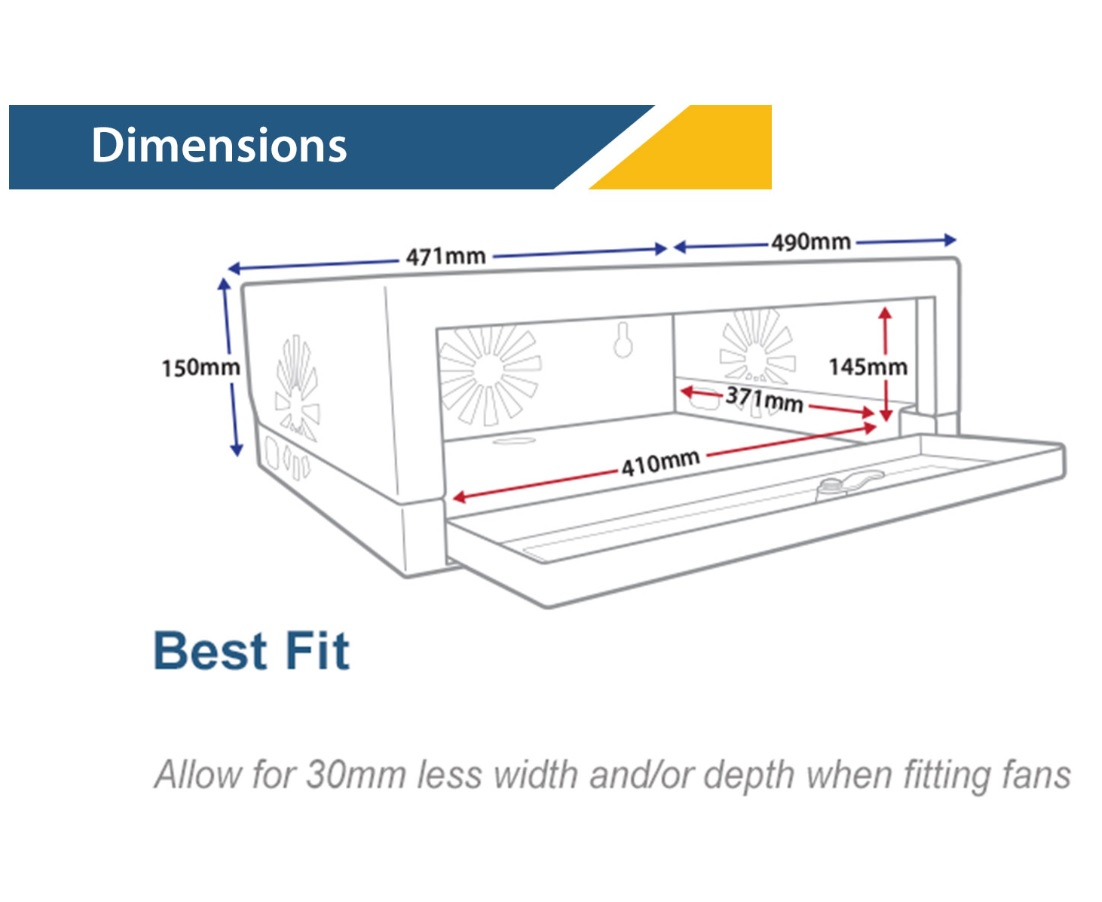 Dimensions | (H)150mm x (W)490mm x (D)471mm |