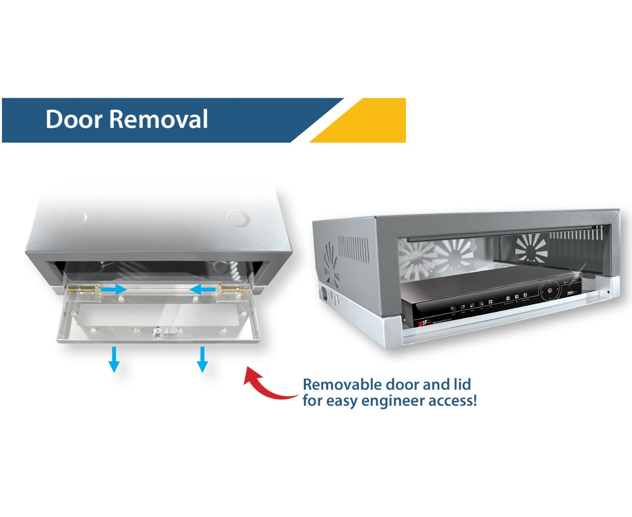 The KitVault range has a unique design that allows both the door and lid to be removed whilst an engineer is installing or maintaining the equipment inside. Once work is done it intuitively slots together and locks resulting in a secure equipment cabinet. It can save valuable engineer's time on service visits.