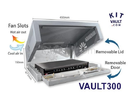 Measuring W490xD471xH150mm, the VAULT300 can be permanently bolted to a wall when sat on desk or worktop thanks to handy boltholes so not only the recorder but the enclosure too are safe from the risk of theft.