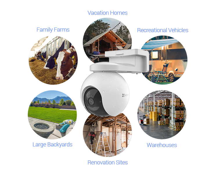 Now, it’s easier than ever to put security in action in the places you care about most. EZVIZ’s newest camera overcomes installation limitations caused by networks or electricity. The EB8 4G is battery-powered with no strings – or cords – attached. It operates on 4G LTE networks in the outdoors where Wi-Fi may not be available. It also inherits key features from EZVIZ's popular outdoor pan & tilt predecessors to provide smart and reliable protection 24/7.
