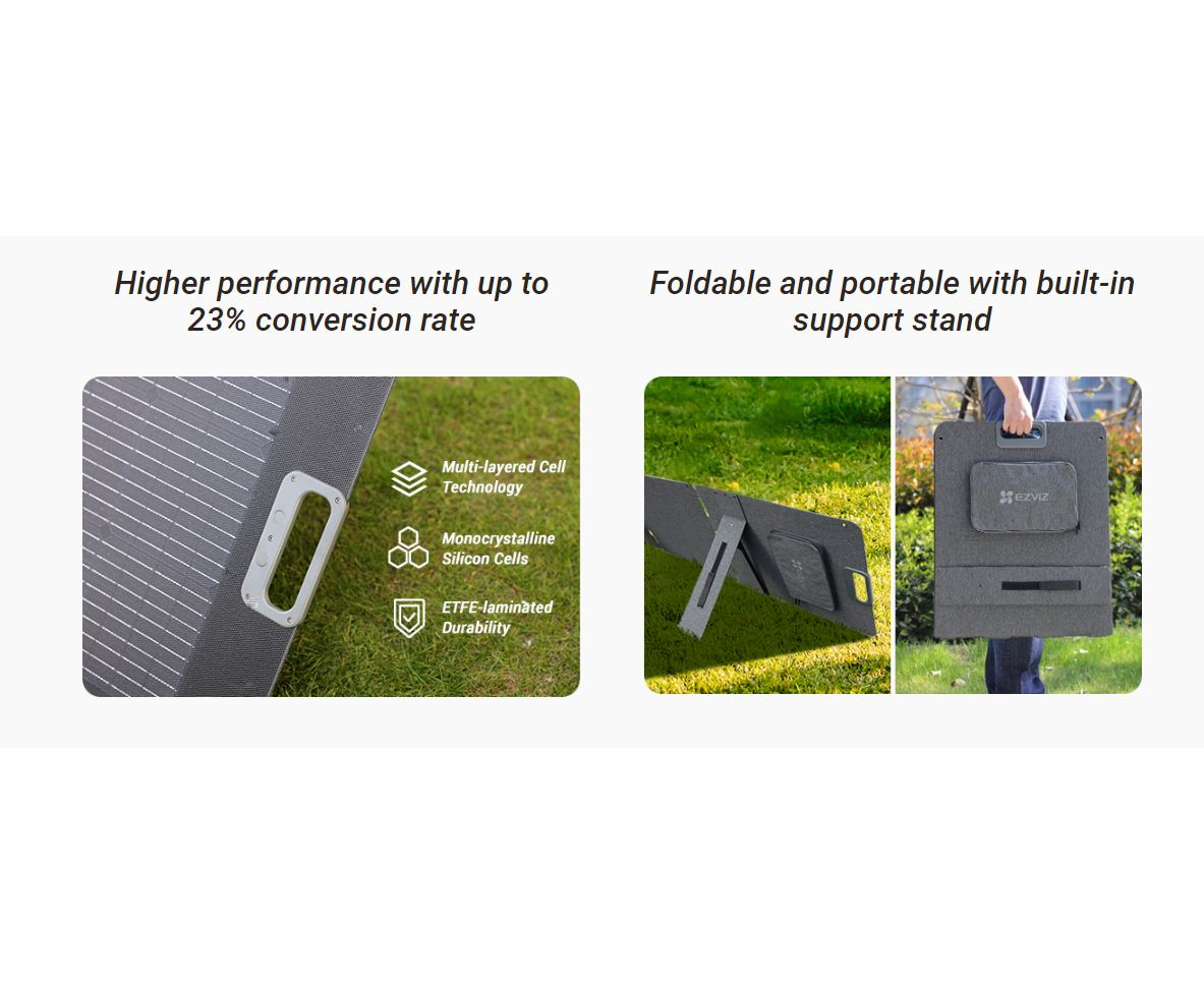 Designed to satisfy both the adventurous outdoor spirit and the leisurely weekend lifestyle, the PSP200 solar panel captures the power of nature so you can leave your worries behind. It uses direct sunlight to charge your EZVIZ power station in an easy, reliable way.