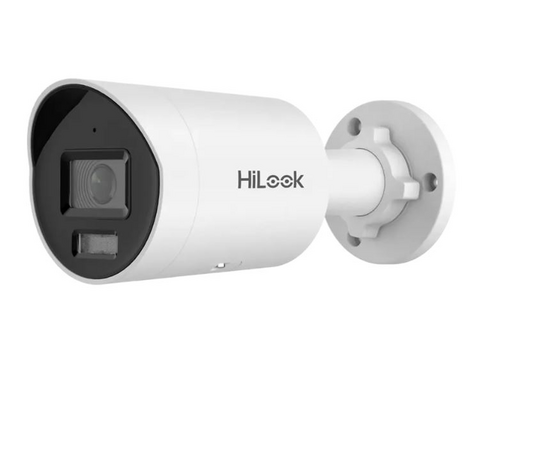 The HiLook IPC-B189H-MU is an ultra-high resolution, 8MP 4K IP turret camera with a 2.8mm fixed lens, 24/7 colour imaging thanks to ColorVu technology, and a built-in microphone for real time audio security. Digital WDR provides clear imaging, even in backlit conditions and the metal body is rated IP67 against dust and water ingress.