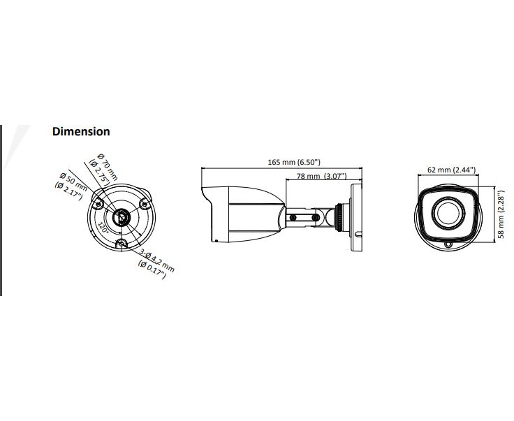 - OSD menu, 3D DNR, 120 dB true WDR, day/night switch