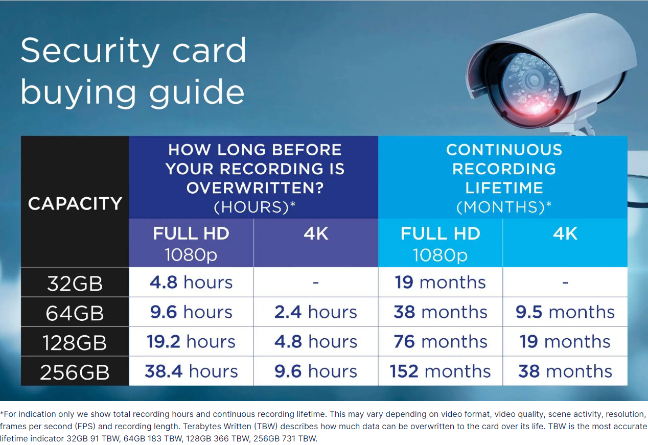 Security microSD cards for Dash Cams, Home Cams, CCTV, Body Cams and Drones. Extended lifetime and reliable recording time after time.