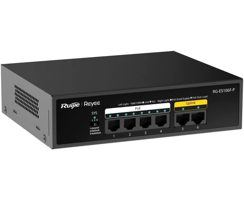 Ruijie RG-ES106F-P – 6-Port 10/100 Mbps Unmanaged PoE Switch