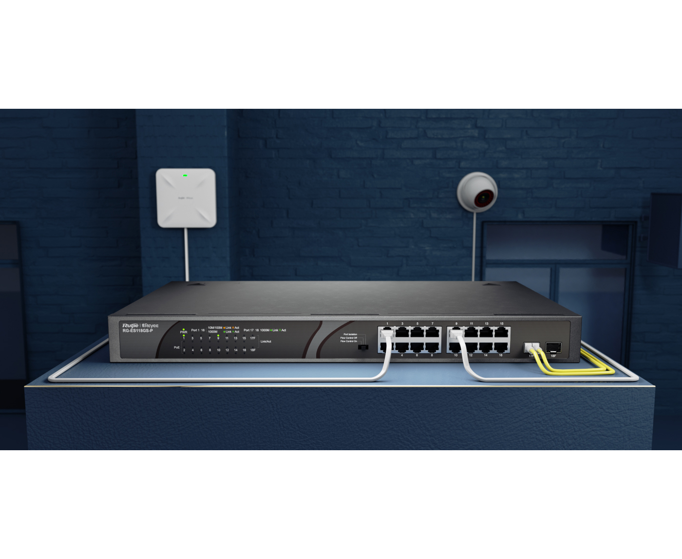 Ruijie RG-ES118GS-P 16 Port Gigabit Unmanaged POE+ (247W) Switch