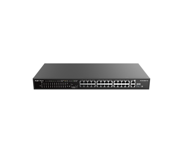 Ruijie RG-ES126S-LP-V2 24 Port (100 Mbps) PoE+ Switch (180W budget) Rackmount Unmanaged - Dual Gb Uplink + Combo ports