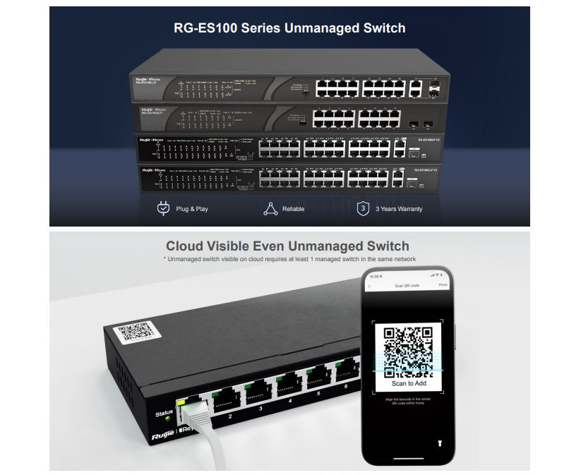 Video surveillance has been widely popularized, and more and higher requirements are raised for surveillance security switches that are indispensable for video data transmission. Ruijie-Reyee launches the RG-ES100 Series of Unmanaged Switches to provide customers with next-generation unmanaged surveillance security switches that feature diversified specifications, stable quality, and high-cost performance. The RG-ES100 Series supports diversified product forms like desktop or rack-mounting installation and 6 to 26 port PoE/non-PoE switches helping customers cope with the stringent requirements of different projects.