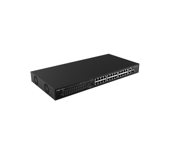 Ruijie RG-ES126S-P-V2 24 Port (100 Mbps) PoE+ Switch (370W budget) Rackmount Unmanaged - Dual Gb Uplink + Combo ports