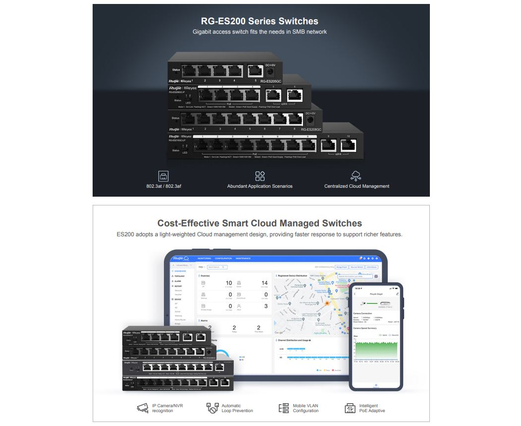 Ruijie RG-ES210GC-LP 8 Port Gigabit Smart Cloud Managed PoE Switch