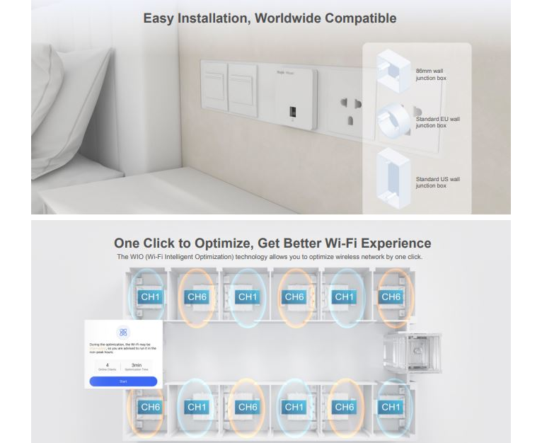 - Dual-radio performance, gigabit wireless wall-mounted AP