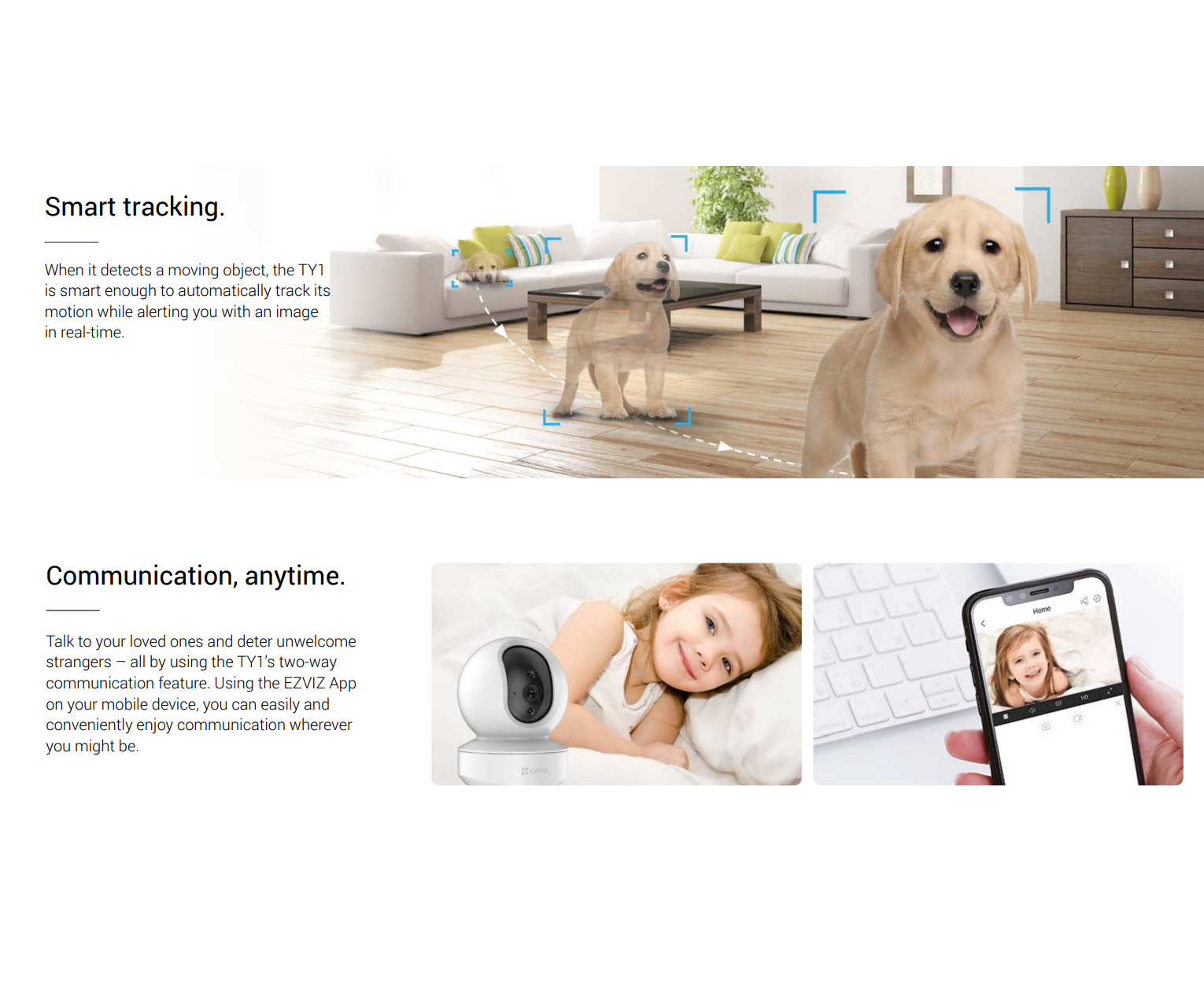 Watch over your entire space easily with the TY1 Camera’s 360-degree field-of-view and its smart tracking feature. It’s got you covered – all day & all night.