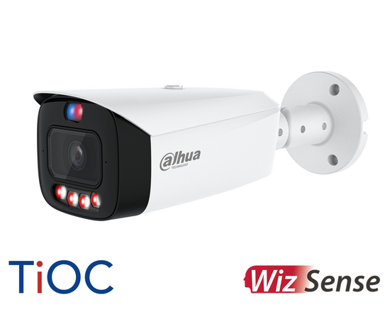 Dahua (IPC-HFW3649T1-AS-PV-PRO) WizSense 6MP TiOC Pro H.265+ 'Active-Deterrent' Bullet Camera, SMD Plus, Starlight, WDR, Smart Dual Illuminator (IR/White Light), Red and Blue Flashing Alarm LEDs, Integrated Speaker, Alarm In/Out, Audio In/Out, Mic, SD Car